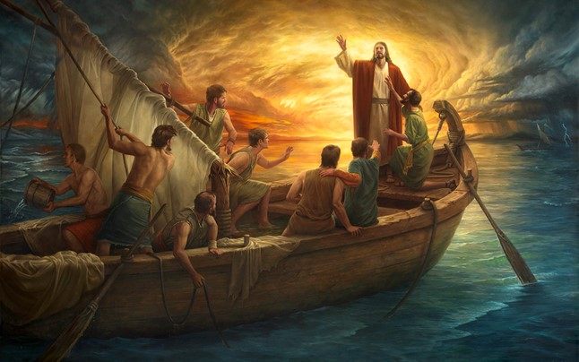 Jesus calmed the storm as His disciples were overcome by fear.